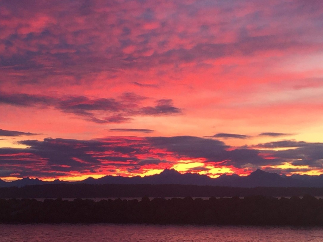 It’s strange going back and forth between land and sea. The contrast is palpable, sea legs notwithstanding. I wanted to share some reflections for those of you interested in what this alternative lifestyle is like. Let’s start with the romance; I am more connected with nature than ever. Our giant tidal range creates change over twelve to fourteen feet somedays. Tides are also semidiurnal, changing four times a day here in the Pacific Northwest. I am in a constant rhythm of floating up and down. My skyline changes with the tides and it’s a game of peek-a-boo with the Olympic Mountain range. Their peaks, almost 100 miles away, show off over the breakwater at high tide and clear skies only to disappear again with clouds or my boat sinking slowly down, safely attached to the floating dock. I live in less than 200 square feet, and I have the most immense backyard you can dream of. Best real estate in Seattle.