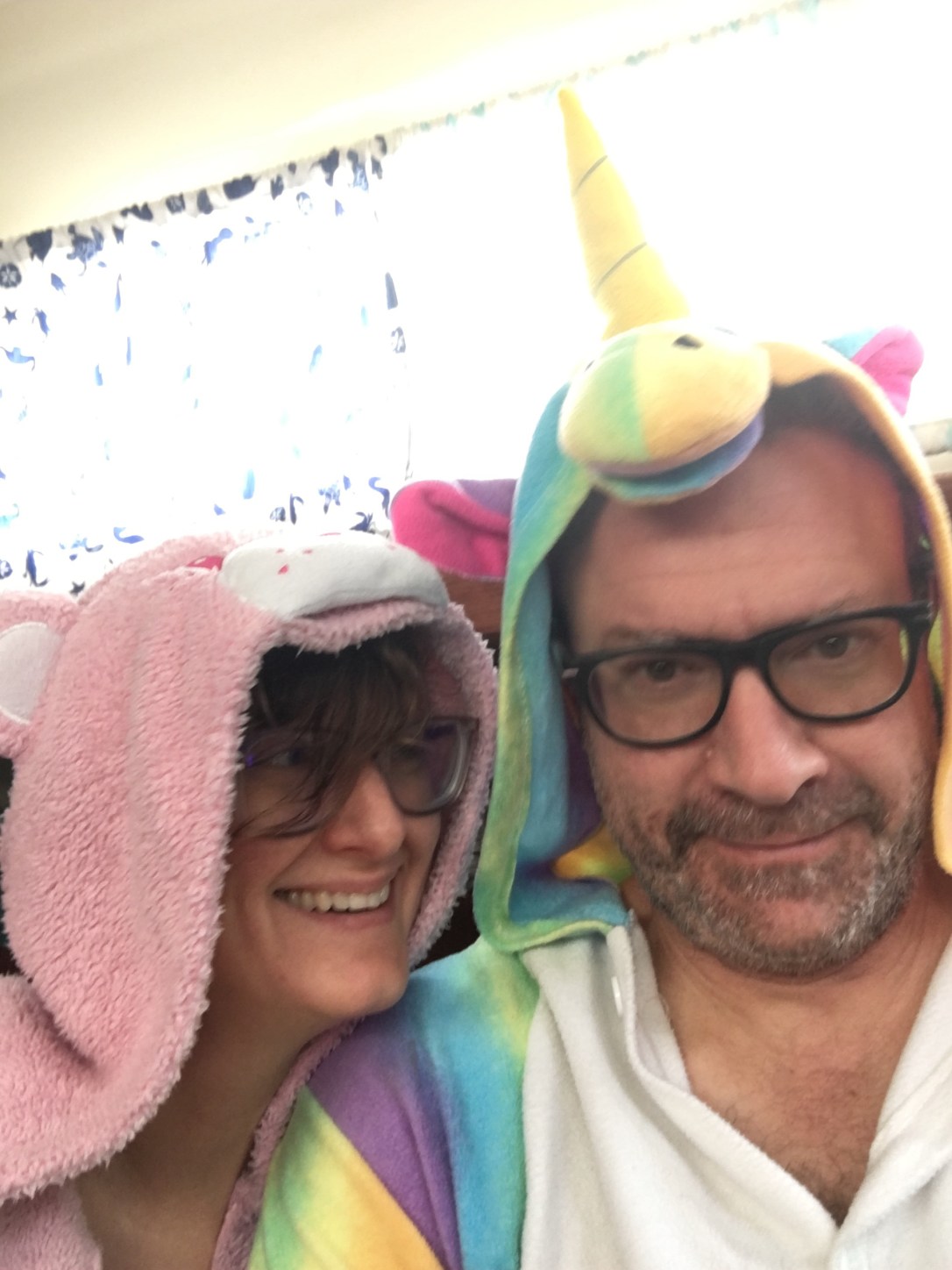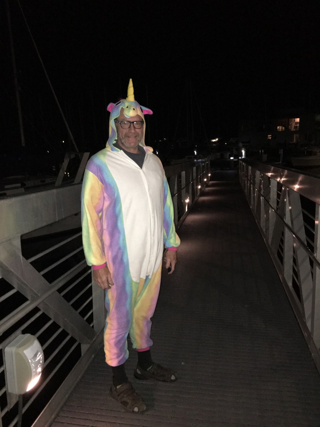 To my surprise, any day I could have well over 100 appreciations easily. Thanks for my coffee, I love your good morning snuggles, I appreciate that you put your shoes where I asked, I love that you are so enthusiastic about my boat, thank you for believing in me, I love your hands, you work so hard, I know you are trying to change, I needed that laugh, you are so silly, I notice how you always move closer to me on the couch when we read so we touch, I am proud of you for taking care of yourself, I love what a nerd you are. Do you see how when you get going the list can go on and on? Itâs not even about appreciating what your partner does for you, itâs also just acknowledging them for who they are and why you like them so damn much. My view of him started to shift, I was more flirty and happy. Instead of angrily nagging about his lateness I would jokingly point it out as I slapped his butt and we would both laugh. As an added bonus, he started feeling better about our relationship and himself and relaxing. This led him to getting stuff done in a more timely fashion. Win-win. Besides, how can I ever stay mad or not appreciate a man who shows up at my dock gate in a unicorn onesie after a hard day at work to cheer me up?
