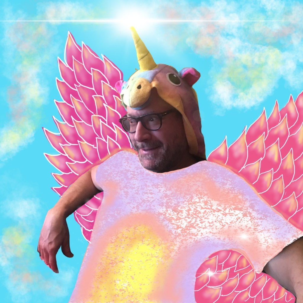 The flamingo and pink flying Jenn looked at me, then one another, and started to laugh. It was my loud and cackling laugh! The other very pink Jenn exclaimed in my same voice and tone, “What the fuck is this?” The flamingo said, “I have no idea, but she has no wings or color. She is super dull and obviously not magic. And look at her pet! He doesn’t even have a horn!”