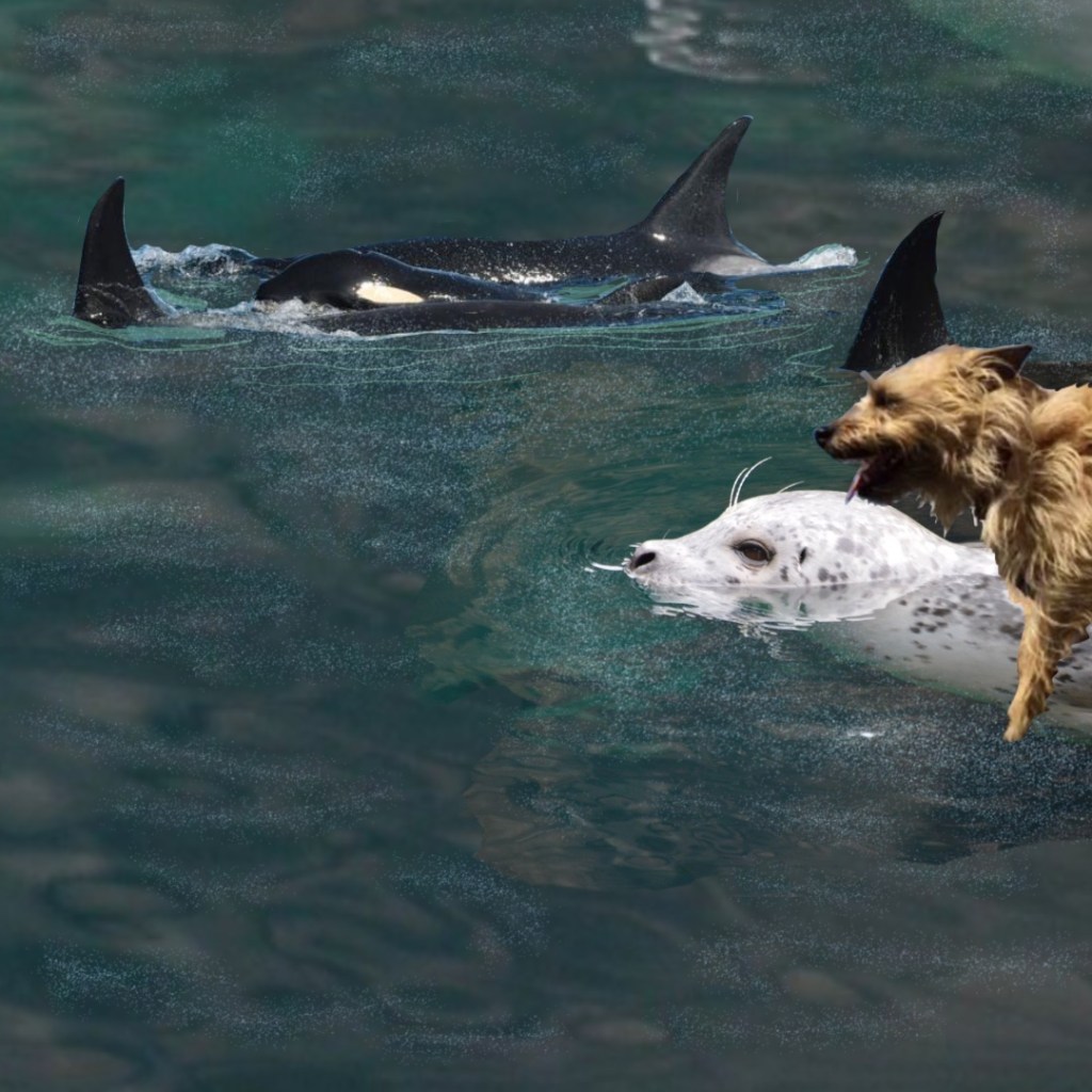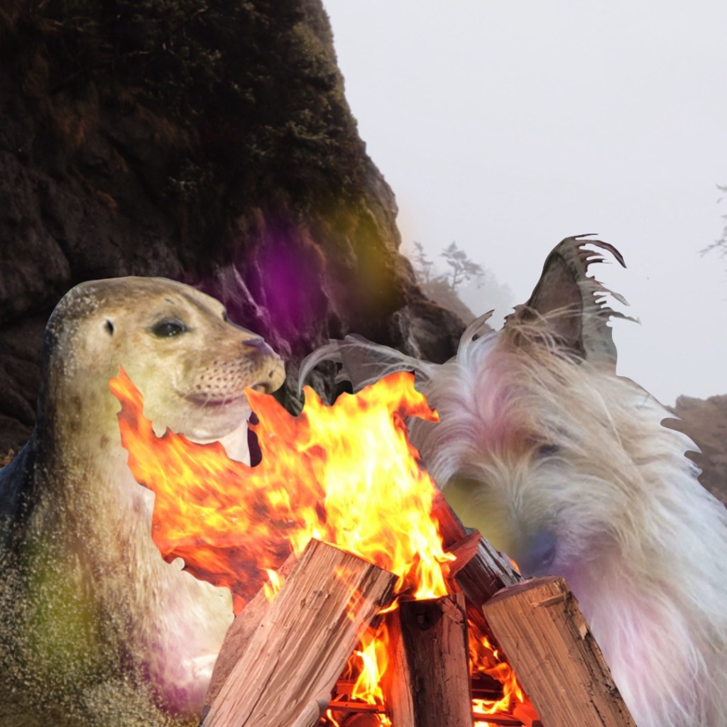 They make it to the other side of the bay, Appa swims to the beach and makes a fire. The seal joins and they roast some fish, swapping shanty tales of salty adventure. The seal really gets him, he understands the magnitude of his adventurous heart in a tiny fluffy body. Appa tells jokes about the humans and the weird things they do, the silly voices they talk to him in, how they poop into a bowl. The seal laughs hysterically telling Appa how they like to mess with humans, but think they are pretty dumb. The Orcas pace the waterline adding in jokes and stories of old. They don’t have much commentary about the humans, they are the keepers of ancient wisdom and know how traumatically naughty those five finger beasts are, they don’t want to buzzkill the party. They praise Appa’s stamina and fish roasting abilities with breaches and tail slaps. The little dog’s chest swells with primal rugged pride. In his mind, he is king of the day.